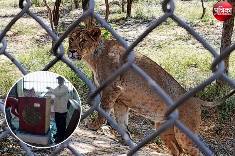 इटावा में 42 डिग्री तापमान, कूलर में मस्ती मार रहे सफारी के शेर