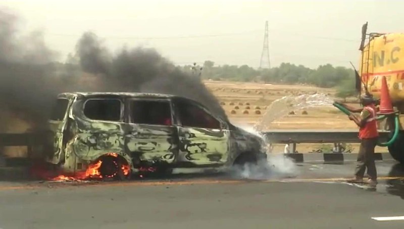 car fire on lucknow agra express way