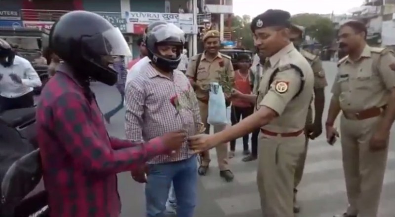 डंडे बरसाने वाली पुलिस आखिर लोगों को क्यों दे रही है गुलाब का फूल, पुलिस के इस बदले मिजाज से हर कोई हैरान