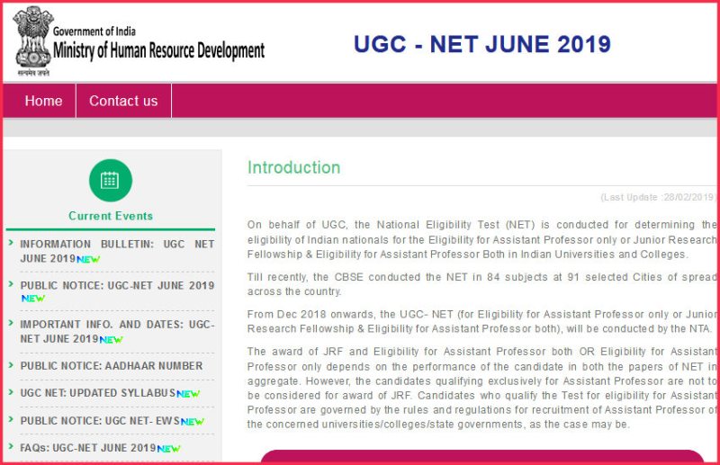 उल्लेखनीय है कि National Testing Agency (NTA) जून 2019 में 'Assistant Professor' और 'Junior Research Fellowship एवं Assistant Professor both' के लिए UGC NET exam 2019 का आयोजन करेगी।