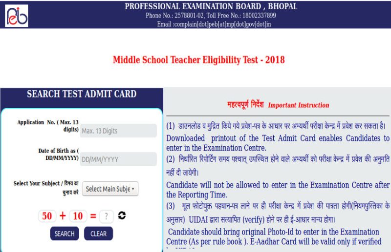 MP TET Admit Card 2018 डाउनलोड करने के लिए यहाँ क्लिक करें
