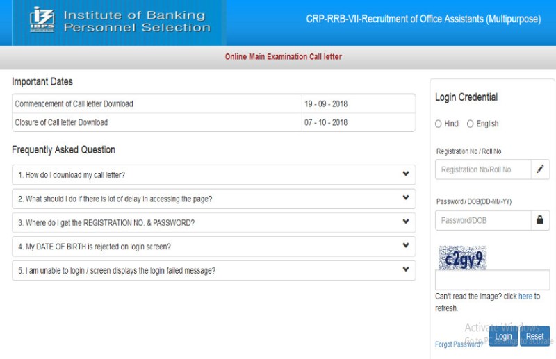 IBPS RRB Office Assistant Main Exam Admit Card डाउनलोड करने के लिए जारी कर दिए गए हैं। IBPS की ओर ये एडमिट कार्ड अपनी आॅफिशियल वेबसाइट ibps.in. पर Download करने के लिए जारी किए गए हैं। Institute of Banking Personnel Selection के द्वारा रेलवे में Group “A”- Officers (Scale-I, II & III) और Group “B”- Office Assistant (Multipurpose) पदों की 5000 vacancies पूरी करने क लिए करने के लिए CRP-RRB-VII-Recruitment 2018 निकाली गई है। इस भर्ती के लिए आयोजित किए गए Preliminary Examination का रिजल्ट इसी महीने की शुरूआत में जारी कर दिया गया था। अब इस परीक्षा में सफल रहे अभ्यर्थियों के लिए मुख्य परीक्षा में शामिल होने के लिए एडमिट कार्ड जारी किए गए हैं। उम्मीदवारों को अपने एडमिट कार्ड 7 October 2018 से पहले डाउनलोड करने हैं क्योंकि इसके बाद एग्जाम का आयोजन किया जा रहा है।