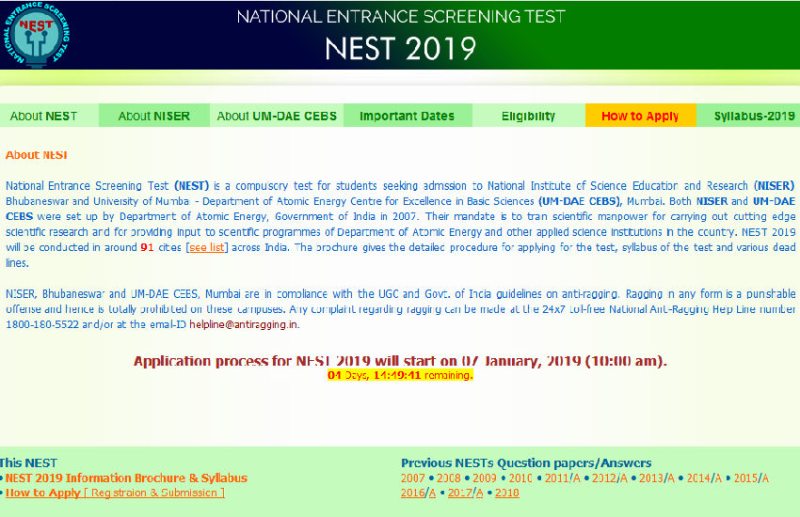 आवेदन की अधिक जानकारी के लिए यहां देखें: https://nestexam.in/docs/19/NEST2019-Brochure-Syllabus.pdf