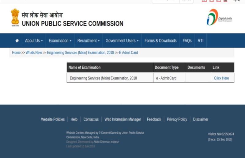 UPSC Engineering Services (Main) e-Admit Card Download करने के लिए जारी कर दिए गए हैं। UPSC ESE / IESE 2018 भर्ती का Notification 27 September 2017