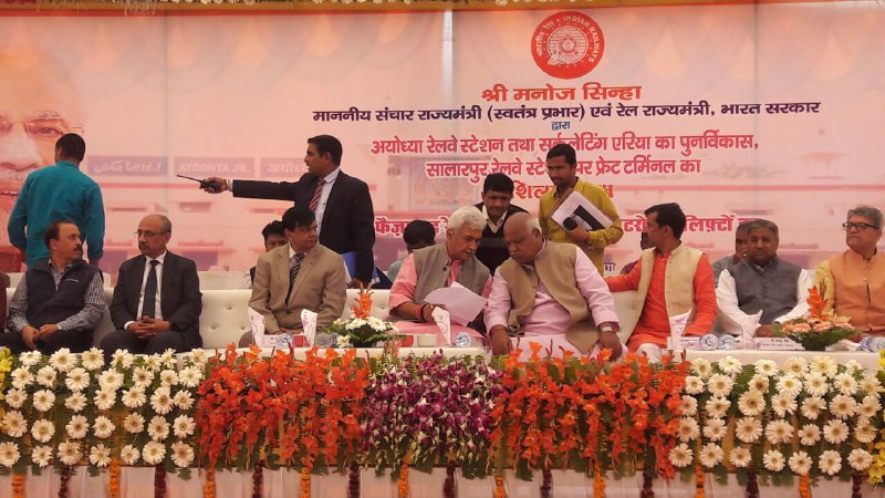 फैजाबाद . मंगलवार की दोपहर धार्मिक नगरी अयोध्या में अयोध्या जंक्शन रेलवे स्टेशन के पुनर्निर्माण और सौंदर्यकरण योजना का शिलान्यास करने पहुंचे रेल राज्यमंत्री मनोज सिन्हा ने फैजाबाद जंक्शन पर नवनिर्मित स्वचालित सीढ़ी और लिफ्ट का भी लोकार्पण किया . इस दौरान रेल राज्य मंत्री ने कहा की अयोध्या और फैजाबाद जंक्शन एक दूसरे के करीब है ,बड़ी संख्या में यात्री और श्रद्धालु फैजाबाद स्टेशन पर भी उतर कर अयोध्या जाते हैं . इसलिए फैजाबाद स्टेशन पर भी यात्री सुविधाओं को बढ़ाया जा रहा है, जिसके तहत दो करोड़ की लागत से फैजाबाद स्टेशन के प्लेटफार्म नंबर एक पर दो स्वचालित सीढ़ी और एक लिफ्ट लगाई गई है, वही प्लेटफार्म संख्या 4 और 5 पर भी एक लिफ्ट लगाई गई है ,प्रत्येक लिफ्ट की क्षमता 13 व्यक्तियों की है ,इसके अतिरिक्त स्टेशन पर बेहतर प्रकाश व्यवस्था साफ सफाई के लिए भी बजट पास किया गया है और इस दिशा में काम चल रहा है . समारोह कार्यक्रम के दौरान आये हुए सभी अतिथियों का रेल मंत्रालय के अधिकारीयों द्वारा स्मृति चिन्ह और पुष्प गुच्छ देकर स्वागत किया गया