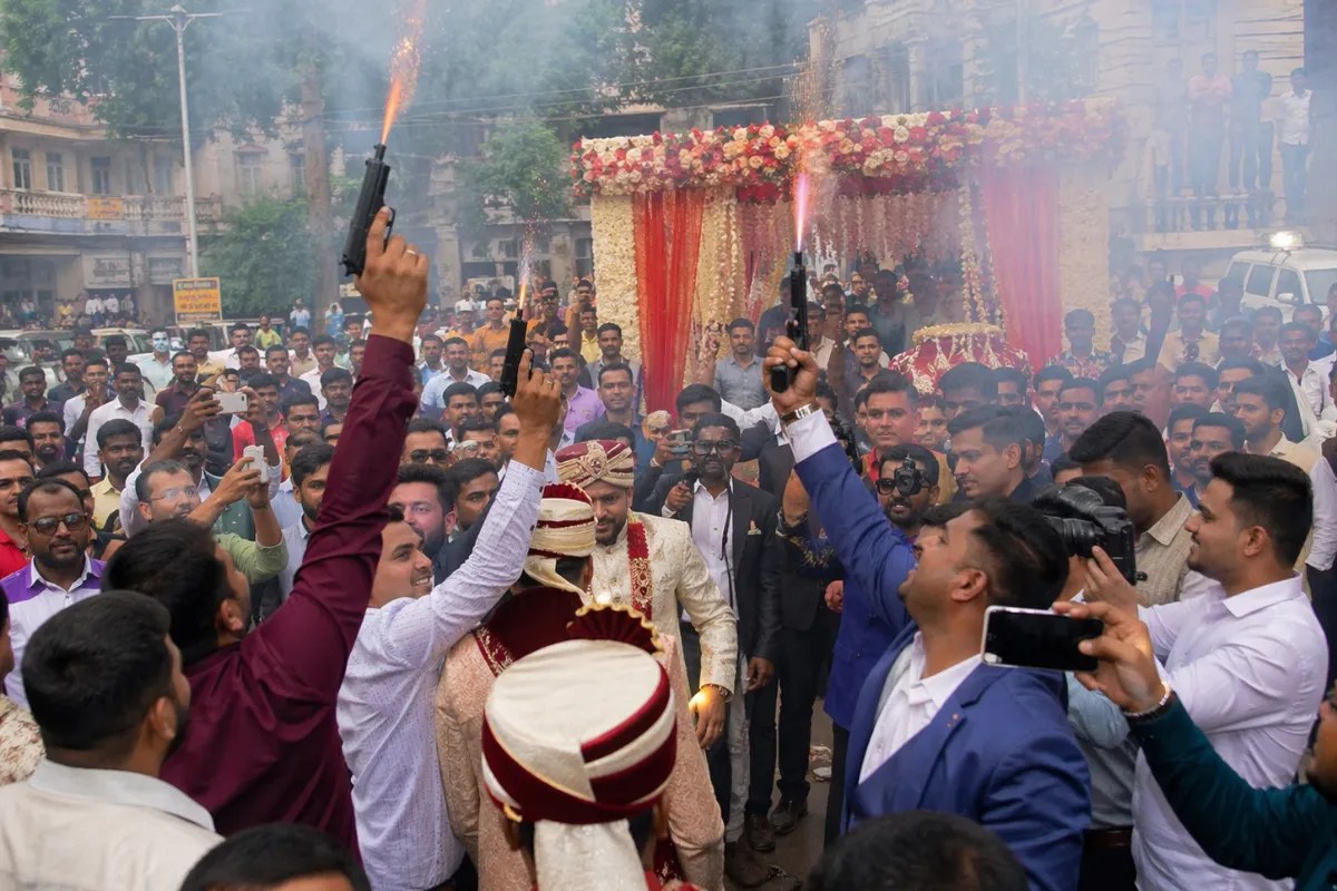 celebratory firing in Farrukhabad: फर्रुखाबाद में मांगलिक कार्यक्रम के दौरान में पहुंचे नेताजी के बाउंसर ने हर्ष फायरिंग कर दी। जो दुल्हन के बहनोई के भाई को लग गई। दुल्हन के बहनोई के भाई को गोली लगते ही मौके पर हड़कंप मच गया। इसके पहले की लोग समझ पाए नेताजी अपने बाउंसर के साथ नौ दो ग्यारह हो गया। इधर दुल्हन के बहनोई को स्थानीय नर्सिंग होम में भर्ती कराया गया। डॉक्टरों के अनुसार उनकी हालत चिंता जनक बनी हुई है। इधर घटना की जानकारी पुलिस को मिली। सूचना पाकर मौके पर पहुंची पुलिस ने घटनास्थल का निरीक्षण किया। आरोपियों को गिरफ्तार करने के लिए टीम लगाई गई। पुलिस ने उन्हें गिरफ्तार कर लिया है। मामला कायमगंज क्षेत्र का है।