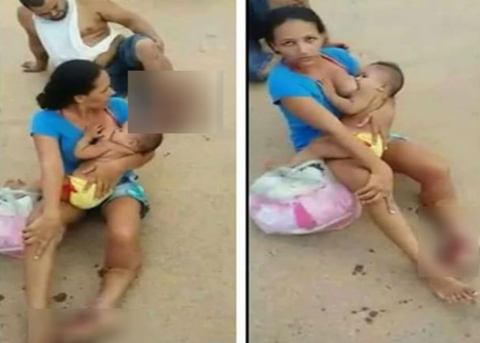 और महिला का पैर बीच में से टूट गया। लेकिन तस्वीर में आप साफ देख सकते हैं कि एक्सीडेंट के बाद घबराए हुए बच्चे को मां ने अपना दर्द सहकर