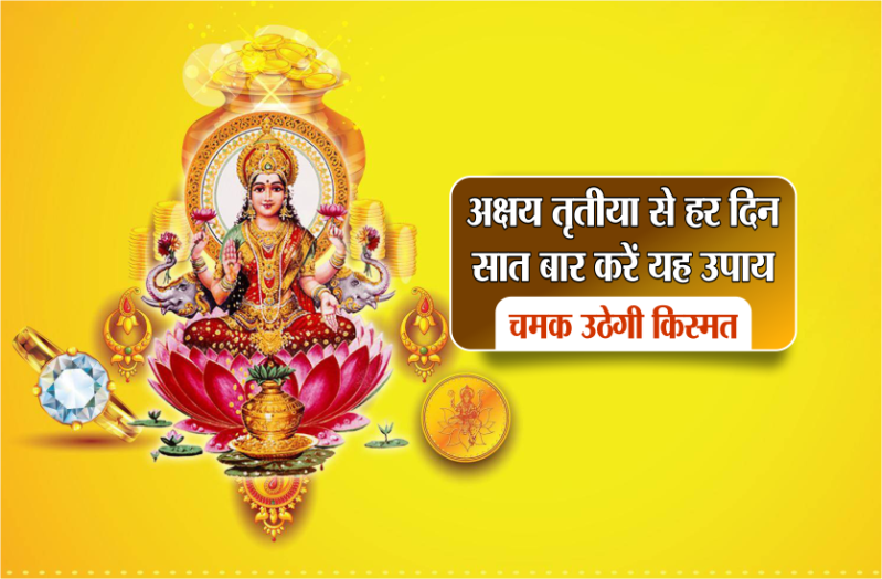 हर दिन सात बार इस प्रक्रिया को दोहराएं। आप देखेंगे कि कुछ ही दिनों में आपका भाग्य चमक उठेगा। अक्षय तृतीया के दिन किया हुआ यह उपाय आपको बहुत लाभ पहुंचायेगा इसके साथ ही इस दिन सोने-चांदी की चीजें खरीदें। इससे भी घर में बरकत आती है। याद रखें की यह उपाय आप सूर्योदय के एक घंटे के अंदर करें, इससे आपको शीघ्र फल मिलने लगेगा।