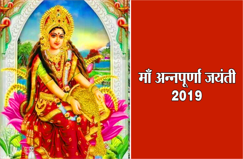 इस साल 2019 में माँ अन्नपूर्णा की जयंती मार्गशीर्ष मास की पूर्णिमा तिथि, 12 दिसंबर दिन गुरुवार को मनाई जाएगी है। अगर अन्न न हो तो धरती पर शायद जीवन भी संभव नहीं हो सकेगा, इसलिए तो अन्न को जीवन का अति महत्वपूर्ण अंग माना जाता है और जिनके उपर मां अन्नपूर्णा की कृपा हो जाये तो फिर उनके जीवन में कभी भी किसी चीज का अभाव नहीं रहता। शास्त्रों के अनुसार इस दिन रसोईघर में चूल्हे आदि का पूजन करने से घर परिवार में कभी भी अन्न और धन-धान्य की कमी नहीं रहती।