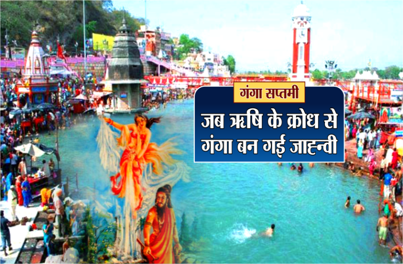 ऋषि जाह्नु के द्वारा गंगा का पूरा जल पी लेने से ऋषि भगीरथ को अपना प्रयास विफल दिखाई देने लगा। वह जाह्नु ऋषि को प्रसन्न करने के लिये तप पर बैठ गये। देवताओं ने भी महर्षि से अनुरोध कर गंगा के पृथ्वी पर अवतरित होने के महत्व के बारे में बताया। तब जाकर ऋषि जाह्नु का क्रोध शांत हुआ और उन्होंने अपने कान से गंगा मैया को मुक्त कर दिया, तभी से गंगा मैया को जाहन्वी भी कहा जाने लगा। जिस दिन ऋषि जाह्नु ने गंगा को मुक्त किया वह दिन था उस दिन वैशाख मास के शुक्ल पक्ष की सप्तमी तिथि थी। इसलिये इसे गंगा सप्तमी और जाह्नु सप्तमी भी कहा जाता है। मान्यता है कि इस दिन गंगा में स्ना करना चाहिए अगर संभव न हो तो घर में ही स्नान करते हुए गंगा मैया का ध्यान करने से भी गंगा स्नान का फल मिल जाता है।