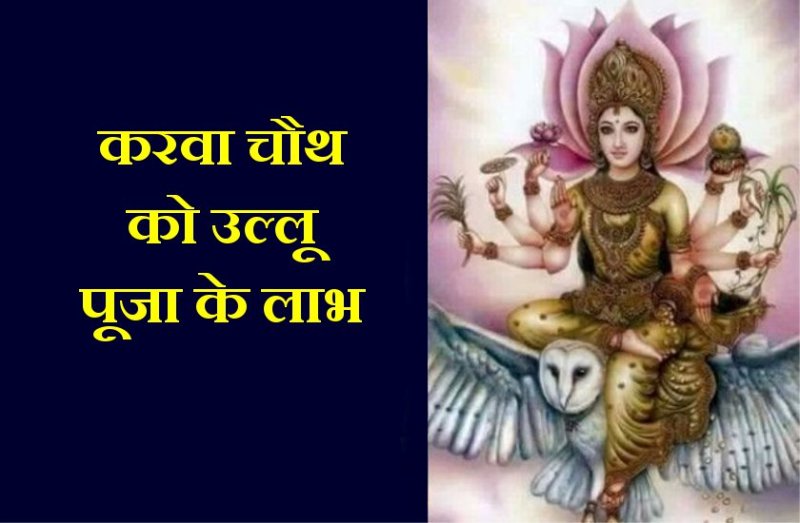 माता लक्ष्मी की कृपा और आशीर्वाद के बाद से ही हर साल दीपावली से ठीक 11 दिन पहले कार्तिक मास की चतुर्थी तिथि यानी ‘करवा चौथ’ के दिन माता लक्ष्मी के वाहन उल्लू पक्षी की पूजा भी जाने लगी। ऐसी मान्यता है कि अगर उल्लू प्रसन्न हो जाये तो माता लक्ष्मी से मिलाने का कार्य उल्लू शीघ्र कर देता है। आज के जमाने में उल्लू तो आसानी से मिलते नहीं इसलिए उल्लू के प्रतीक के रूप में पूजा स्थल पर एक पूजा सुपारी स्थापित कर उसका पूजन करना चाहिए। ऐसा करने से माता लक्ष्मी शीघ्र प्रसन्न हो जाती है।