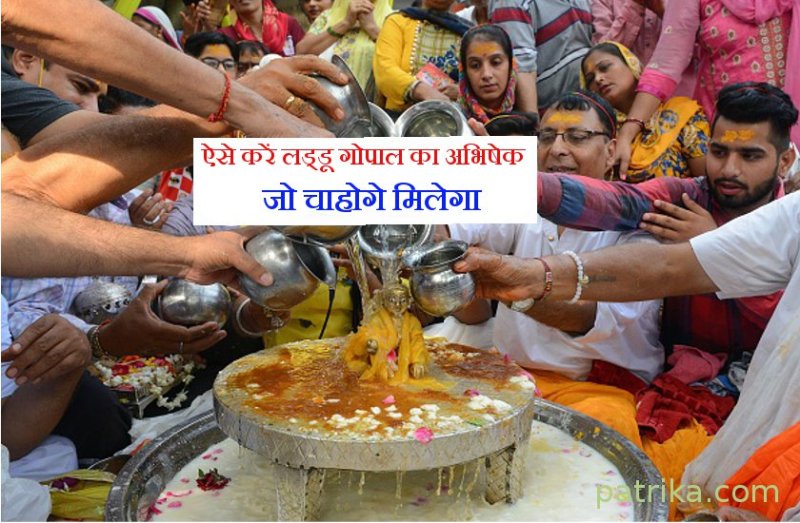 भगवान विष्णु के ने पृथ्वी को पापियों से मुक्त करने के लिए श्रीकृष्ण रुप में भाद्रपद माह के कृष्ण पक्ष की अष्टमी तिथि को मध्यरात्रि रोहिणी नक्षत्र में देवकी और वासुदेव के पुत्ररूप अवतार लिया था। प्रयास करें की जन्माष्टमी के दिन रात्रि में कृष्ण जन्म होने के बाद हील लड्डू गोपाल का अभिषेक करें। जन्माष्टमी के दिन इस विधि से भगवान लड्डू गोपाल का अभिषेक करने से प्रसन्न होकर कृष्ण जी मन की हर इच्छा पूरी कर देते हैं।