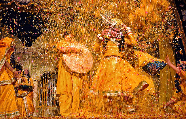 पीतल की बड़ी बड़ी पिचकारियों से एक ओर श्यामसुन्दर एवं उनके सखा गुनगुना टेसू का रंग हुरिहारों पर डाल रहे थे तो दूसरी ओर हजारों हुरिहार मस्ती में रसिया गायन ‘‘आज बिरज में होरी रे रसिया‘’ या ‘‘होरी खेलन आयो श्याम आज याहि रंग में बोरो री‘’ कर रहे थे या फिर ब्रज की परंपरा के अनुकूल थिरक रहे थे। श्यामसुन्दर की पिचकारी से अपने ऊपर पड़ रहे रंग से भाव विभोर थे। उनके चेहरे से ऐसी अनुभूति झलक रही थी जैसे उन्हें दुनिया का सबसे बड़ा खजाना मिल गया हो। लगभग एक घंटे से अधिक देर तक चली इस होली का समापन‘‘नन्द के लाला की जय‘’एवं‘‘राधारानी की जय‘’से जब हुआ तो टेसू के रंग से सराबोर हुरिहारों में उस रज को अपने मस्तक पर लगाने की होड़ मच गई।