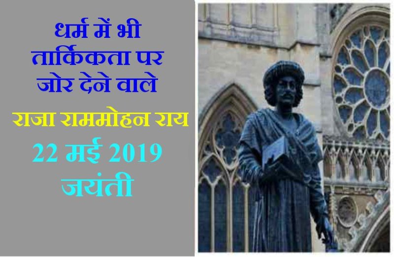 22 मई 2019 को मूर्ति पूजा और समाज में फैली बुरी कुरुतियों का विरोध करने वाले देश के महान समाज सुधारक राजा राम मोहन राय की 247वीं जयंती है। 'भारतीय पुनर्जागरण के जनक' और 'आधुनिक भारत के निर्माता' के तौर पर आज भी याद किये जाने वाले राजा राम मोहन राय ने 19वीं सदी में समाज सुधार के लिए अनेक आंदोलन चलाए, जिनमें सबसे मुख्य सती प्रथा को खत्म करने के लिए बिगुल बजाया था, जो सफल भी रहा।