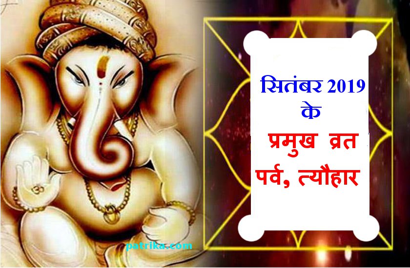 सितम्बर 2019 के प्रमुख व्रत, पर्व और त्यौहार