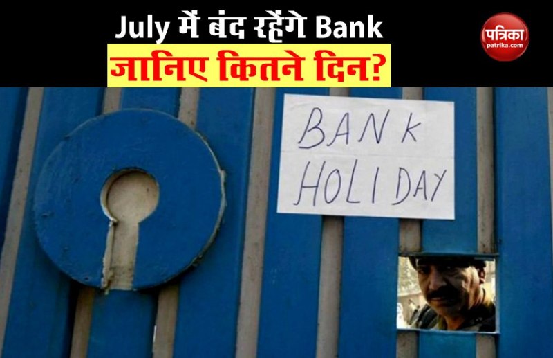 जुलाई के महीने में जून की तरह की छुट्टियां रहेंगी। शनिवार और रविवार की बात करें तो जुलाई में छह दिन आवकाश रहेगा। अगर बात तारीखों की करें तो 5, 11, 12, 19, 25 और 26 जुलाई को शनिवार और रविवार के कारण बैंकों का अवकाश रहेगा। वहीं 31 जुलाई को बकरा ईद की वजह से बैंकों की गजेटिड छुट्टी होगी।