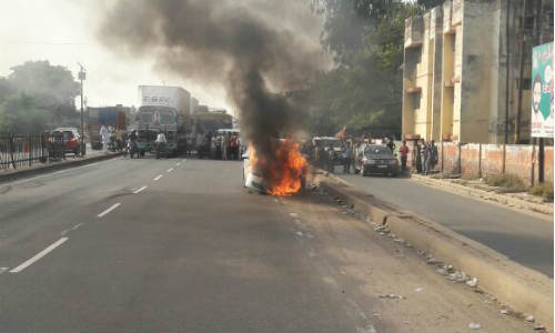 फिरोजाबाद। हाईवे पर चलती कार में आग लग गई। कार सवारों ने कूदकर जान बचाई। हादसा फायर ब्रिगेड कार्यालय से 50 कदम की दूरी पर हुआ। इसके बाद भी फासर ब्रिगेड की गाड़ी करीब 30 मिनट बाद मौके पर पहुंची। इस दौरान राहगीरों में हड़कंप की स्थिति बनी रही। जब तक कार से आग की एक भी लपट उठती रही तब तक कोई भी वाहन चालक आगे निकलने की हिम्मत नहीं कर सका। बाद में आग बुझने के बाद राहगीर गंतव्य के लिए रवाना हुए। इस दौरान हाईवे पर जाम के हालात पैदा हो गए।