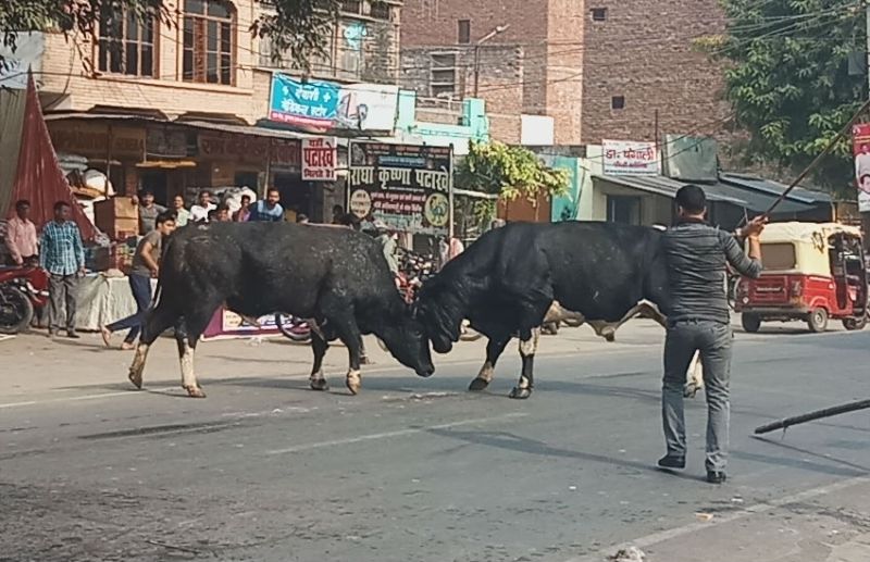 दोनों को अलग करने के लिए लोगों ने खूब लाठियां बरसाईं, पानी डाला लेकिन सांड पीछे नहीं हटे। दोनों में काफी देर तक लड़ाई होती रही। सड़क पर आ जाने के कारण कई बार जाम के हालात पैदा हो गए। नगरवासियों ने इन सांडों को पकड़वाकर गोशाला भिजवाए जाने की मांग की है। जिससे आगे उन्हें इस प्रकार के नुकसान का सामना न करना पड़े।