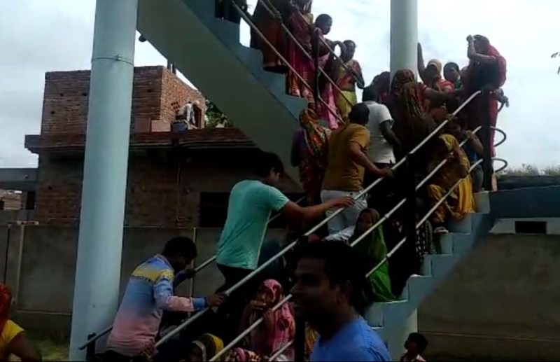 फिरोजाबाद। फिरोजाबाद में अजीबो गरीब नजारा देखने को मिला। विकास कार्य न होने से परेशान ग्रामीणों ने मिट्टी का तेल डाल लिया और टंकी पर चढ़ गए। करीब नौ घंटे तक लोग टंकी पर चढ़े रहे। इस बीच भूख प्यास से बच्चे व्याकुल नजर आए। लोगों को मनाने के लिए कई थानों का फोर्स पहुंच गया लेकिन ग्रामीण नहीं माने। बाद में नगर आयुक्त और महापौर के आश्वासन के बाद ग्रामीण टंकी से नीचे उतरकर आए।