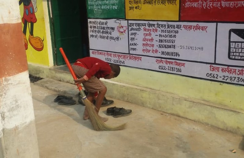 प्राथमिक विद्यालय उसायनी का शौचालय काफी गंदा पड़ा था। सफाई कर्मचारी जब शौचालय की सफाई करने पहुंचा तो स्कूल का हैंडपंप खराब था। विद्यालय में पानी की व्यवस्था न होने के कारण शिक्षिका और सफाई कर्मचारी ने बच्चे को पानी लाने के लिए गांव भेज दिया। क्लास छोड़कर बालक बाल्टी में गांव से पानी भरकर लाया। तब शौचालय की सफाई की जा सकी।