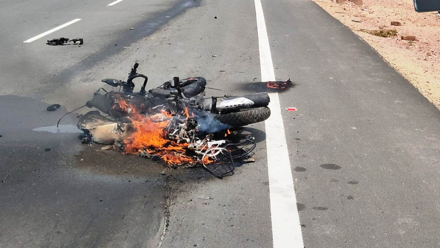 हादसा सोमवार दोपहर के समय हुआ। यात्रियों से भरी एक रोडवेज बस शिकोहाबाद से इटावा जा रही थी। बस में करीब 20 यात्री सवार थे। यात्रियों के इंतजार में बस थाना सिरसागंज क्षेत्र के नगला राधे मोड़ पर खड़ी थी। तभी एक बाइक सवार दंपत्ति को बचाने के प्रयास में कंटेनर अनियंत्रित होकर बस में घुस गया। दोनों की भिड़ंत के दौरान ही बाइक भी बीच में फंस गई और उसमें आग लग गई।