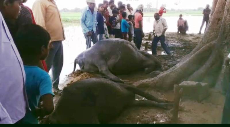 भैंस मालिकों के अनुसार तीनों भैस एक पीपल के पेड़ के नीचे बंधी हुईं थीं। तभी आकाशीय बिजली गिरने से तीनों भैंस की मौत हो गई। बारिश बंद होने के बाद मृत पशुओं को देखकर पशु मालिकों के परिवार में मातम छा गया। परिजनों के मुताबिक तीनों भैंसों की कीमत करीब ढाई लाख रुपए बताई गई है। आकाशीय बिजली से भैंसों की मौत होने की खबर पर क्षेत्रीय लेखपाल गीता मौके पर पहुंची और जांच पड़ताल शुरू की। लेखपाल का कहना है कि भैंसों का पोस्टमार्टम कराया जाएगा। पोस्टमार्टम रिपोर्ट के आधार पर आगे की कार्रवाई की जाएगी।