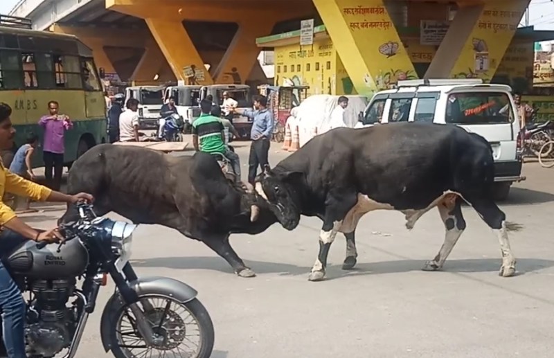 सांड़ों के बीच हुई लड़ाई को समाप्त कराने के लिए सुभाष चौराहा पर तैनात दो पुलिसकर्मियों ने हिम्मत दिखाई लेकिन जैसे ही पुलिसकर्मियों ने उन पर लाठी भांजी, वैसे ही उन्होंने पुलिसकर्मियों को ही दौड़ा दिया। वह जान बचाकर भाग निकले। बाद में एक सांड के नीचे गिर जाने के बाद वह भाग खड़ा हुआ और करीब एक घंटे बाद लड़ाई शांत हो सकी।