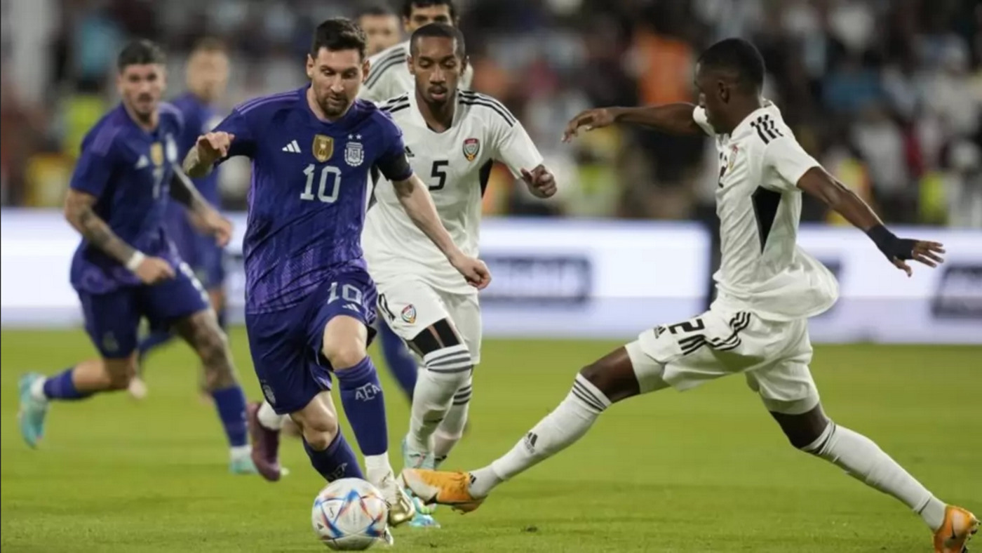 फुटबॉल का महाकुंभ कहलाने वाले फीफा वर्ल्ड कप (FIFA World Cup) के 2022 एडिशन का आगाज़ होने में अब सिर्फ 2 दिन का ही समय बचा है। कतर (Qatar) में आयोजित होने वाले इस टूर्नामेंट की शुरुआत 20 नवंबर से हो रही है और यह 18 दिसंबर तक चलेगा। फुटबॉल के इस वर्ल्ड कप के अभ्यास मैचों का दौर शुरू हो गया है। इस टूर्नामेंट से पहले अपने अंतिम अभ्यास मैच में अर्जेंटीना (Argentina) का यूएई से आमना-सामना हुआ। इसमें अर्जेंटीना ने यूएई (United Arab Emirates) को 5-0 से हराते हुए एकतरफा जीत दर्ज की।