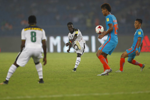 नई दिल्ली। मेजबान भारत का फीफा अंडर-17 विश्व कप में सफर गुरुवार को हार के साथ ही खत्म हो गया। घाना ने उसे जवाहरलाल नेहरू स्टेडियम में खेले गए ग्रुप-ए के मैच में 4-0 से मात दी। भारत का यह इस विश्व कप में आखिरी मैच था। इससे पहले उसे अमरीका और कोलंबिया के हाथों हार मिली थी। मेजबान देश अपने ग्रुप में सबसे नीचे चौथे स्थान पर रहा। घाना ने पहले हाफ में एक गोल किया, जबकि दूसरे हाफ में तीन गोल मारे। उसके लिए कप्तान एरिक आइयाह ने 43वें और 52वें मिनट में दो गोल किए। उनके अलावा 86वें मिनट में रिचर्ड डॉनसो ने और 87वें मिनट में इम्मेनुएल टुकु ने गोल किया।