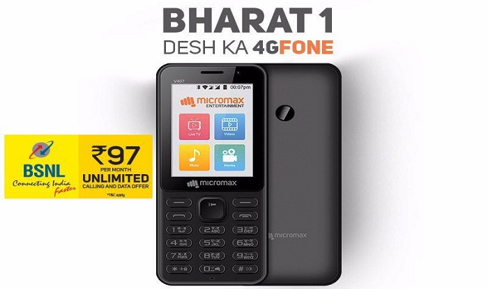 प्रमुख घरेलू मोबाइल ब्रांड माइक्रोमैक्स ने सरकारी दूरसंचार प्रदाता बीएसएनएल के साथ मिलकर मंगलवार को अपने बहुप्रतीक्षित 4G VOLTE feature phone 'भारत-1' को बाजार में लॉन्च कर दिया है। कंपनी ने अपने एक बयान में कहा कि यह फोन देश में 50 करोड़ से अधिक फीचर फोन यूजर्स को ध्यान में रखकर उतारा गया है। माइक्रोमैक्स और बीएसएनएल सबसे बेहतर मोबाइल अनुभव मुहैया कराने के लिए मिलकर काम करेंगे। इसकी कीमत 2200 रुपए रखी गई है। इसे 'देश का 4जी फोन' नाम दिया गया है।