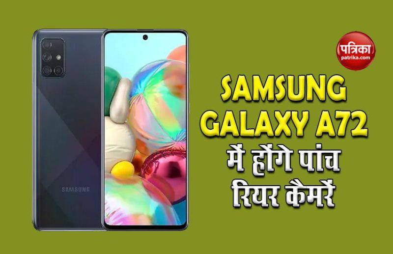 दक्षिण कोरियाई कंपनी सैमसंग samsung अपने आगामी सीरीज samsung galaxy को लेकर सुर्खियों में छाई हुई है। खबरों के अनुसार, कंपनी Samsung Galaxy A72 को पांच कैमरों के साथ लॉन्च करने वाली है। बताया जा रहा है कि कंपनी इस फोन को 2021 के शुरुआत में बाजार में पेश करने वाली है। ये पहला स्मार्टफोन होगा जो पांच सेंसर वाले कैमरा सेटअप के साथ आएगा। पेंटा-कैमरा सेटअप किसी सैमसंग फ्लैगशिप फोन में नहीं दिया जाएगा, बल्कि इसे Galaxy A72 में दिया जाएगा। Galaxy A72 को इस साल की शुरुआत में लॉन्च हुए Galaxy 71 के अपग्रेड के तौर पर लॉन्च किया जाएगा।
