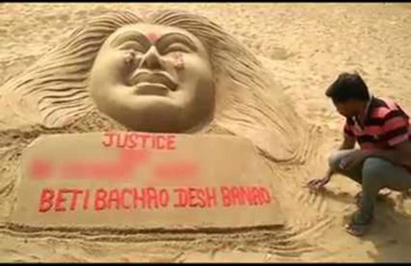 सैंड आर्टिस्ट हेमचंद साहू ने रेत से छवि उकेरते हुए बेटी बचाओ का स्लोगन भी लिखा। उन्होंने आरोपियों के खिलाफ कड़ी से कड़ी सजा की मांग करते हुए कहा कि 'महिला डॉक्टर के साथ जो हुआ वह सभ्य समाज के लिए किसी त्रासदी से कम नहीं है।