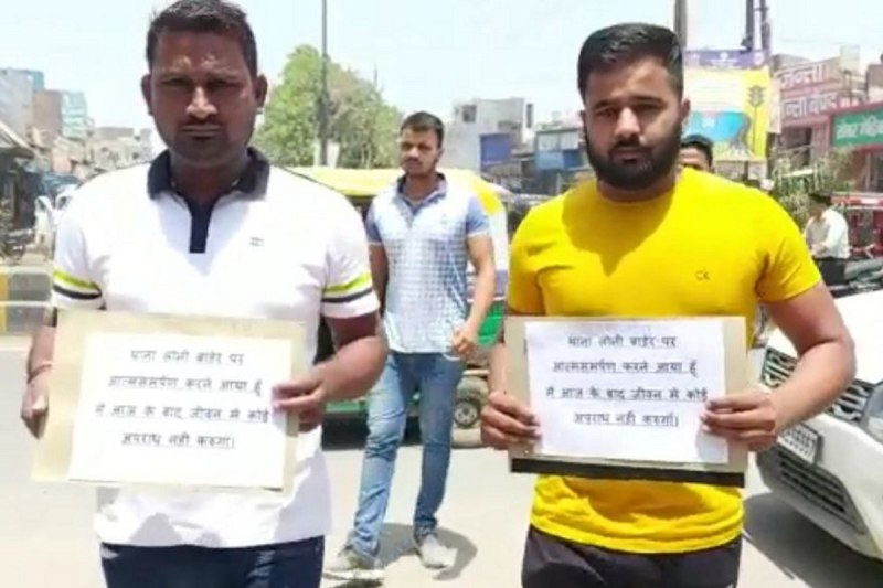 एसपी देहात डॉ. ईरज राजा ने बताया कि गाजियाबाद के गांव रिस्तल के रहने वाले कपिल पुत्र जयपाल और सागर पुत्र तेजपाल के खिलाफ 20 दिसंबर 2021 को थाना लोनी में गैंगस्टर का केस दर्ज किया गया था। तभी से दोनों वांछित चल रहे थे। पुलिस लगातार इनकी तलाश में जुटी हुई थी। इनकी गिरफ्तारी के लिए लोनी थाना पुलिस और लोनी बॉर्डर पुलिस हर संभव प्रयास में जुटी थी। उधर, शासन व प्रशासन की तरफ से समाज को भयमुक्त बनाए जाने के उद्देश्य से लगातार कार्रवाई की जा रही है। आए दिन मुठभेड़ के दौरान बदमाश गिरफ्तार किए जा रहे हैं। पुलिस की इस कार्रवाई के भय के कारण शुक्रवार को कपिल और सागर दोनों ही अपने गले में तख्ती डालकर थाना लोनी बॉर्डर पहुंच गए। उन्होंने अपनी तख्ती पर लिखा था कि हम आत्मसमर्पण करने आए हैं। आज के बाद अपने जीवन में कोई भी अपराध नहीं करेंगे।