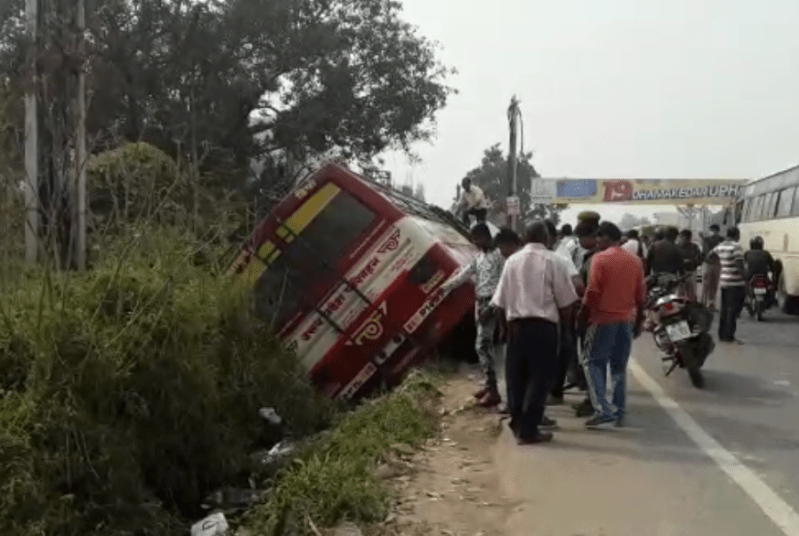 BIG BREAKING: नेशनल हाईवे पर बड़ा हादसा, 60 यात्रियों से भरी बस नाले में गिरी