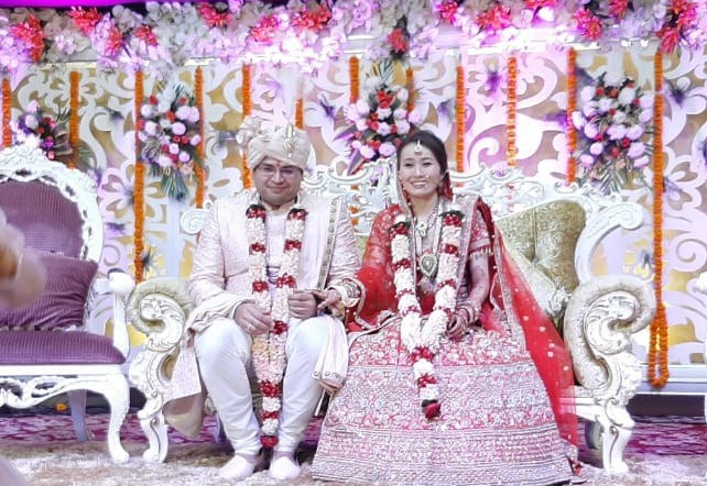 शुक्रवार को मुरादनगर (Muradnagar) में मेरठ हाईवे (Meerut Highway) पर बसंतपुर सैंतली गांव के पास चीन की युवती डॉ. सारा और हापुड़ के श्रेयांश का विवाह हुआ। देवतारा मंडप में हुई दोनों शादी मुख्य आकर्षण का केंद्र बनी रही। विवाह जैन समाज की रीति रिवाज के अनुसार हुआ। सारा के परिजनों को इस शादी में शामिल होने की परमीशन नहीं मिली। इसकी वजह कोरोना वायरस बताया जा रहा है। श्रेयांश के चाचा हापुड़ निवासी मुकेश जैन ने कहा कि दोनों की शादी जैन समाज के रीति-रिवाज के अनुसार हुई है। सारा न्यूयार्क (New York) में रहती है। उनका भतीजा श्रेयांश भी न्यूयार्क में ही रहता है। पढ़ाई के दौरान दोनों की जान-पहचान हुई थी। करीब सात साल से दोनों दोस्त हैं। अब दोनों ने शादी करने का निर्णय लिया था।