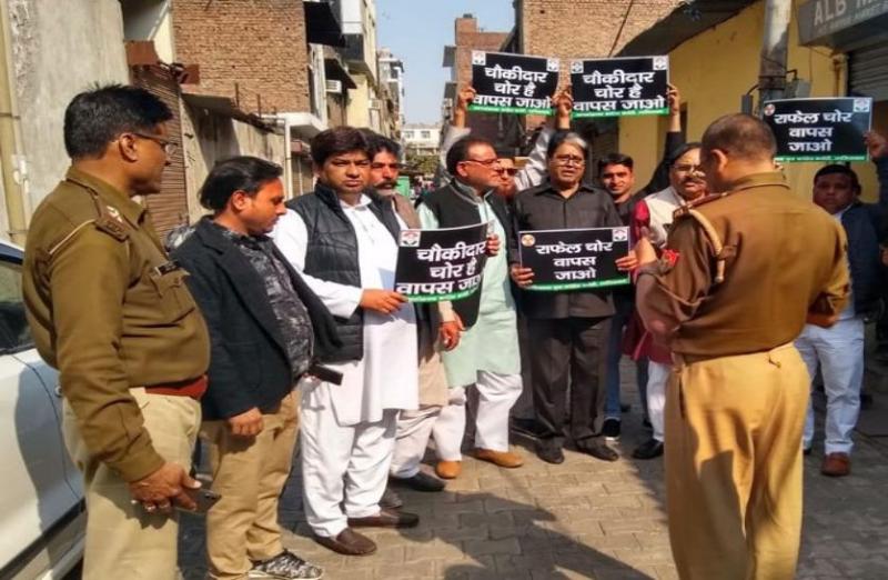 जानकारी के मुताबिक साहिबाबाद इलाके की आराधना बार्डर के पास यूपी कांग्रेस के संयुक्त सचिव नरेंद्र और पूर्व मंत्री सतिश शर्मा के नेत़त्व में तमाम कांग्रेस कार्यकर्ता मोदी सरकार के खिलाफ प्रदर्शन कर रहे थे। कार्यकर्ताओं के हाथ में तख्तियां थीं, जिस पर 'चौकीदार चोर है' लिखा हुआ था। वहीं विरोध प्रदर्शन की खबर मिलते ही मौके पर पहुंची पुलिस ने सभी पूर्व मंत्री सतिश शर्मा समेत कई कांग्रेसी नेताओं के हिरासत में लिया।