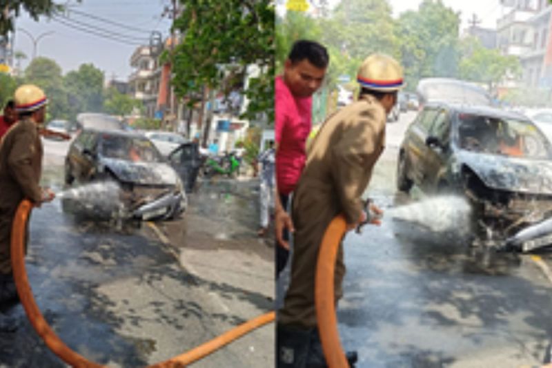 घटनास्थल पर पहुंचकर फायर कर्मियों ने देखा कि गाड़ी में लपटें काफी तेज थी और आग तेजी से फैल रही थी। फायर यूनिट ने फायर फाइटिंग कर आग को बुझा दिया।