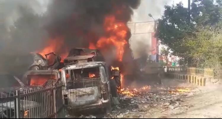 गाजियाबाद। जनपद के ट्रॉनिका सिटी थाने में अचानक उस वक्त भगदड़ मच गई जब थाना परिसर में खड़े सीज वाहनों में भीषण आग लग गई। आनन-फानन में इसकी सूचना दमकल विभाग को दी गई। सूचना के आधार पर दमकल विभाग की कई गाड़ियों ने मौके पर पहुंची और घंटों की कड़ी मशक्कत के बाद आग पर काबू पाया गया। आग लगने का कारण थाने के ऊपर से जा रही बिजली की हाईटेंशन लाइन के तारों में स्पार्क होना बताया गया है।