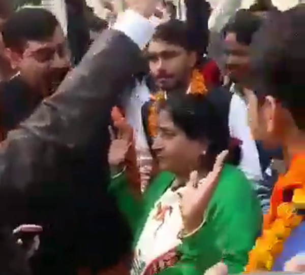 दरअसल, गुरुवार को आचार संहिता का उल्लंघन करते हुए एबीवीपी के समर्थन में गाजियाबाद के एमएमएच कॉलेज में पहुंचे भाजपा के महानगर अध्यक्ष अजय शर्मा और नई मेयर आशा शर्मा को छात्रों के भारी विरोध का सामना करना पड़ा। आपको बताते चलें कि एमएमएच कॉलेज में छात्रसंघ का चुनाव होना है। गुरुवार को अचानक ही गाजियाबाद भाजपा के महानगर अध्यक्ष अजय शर्मा और नवनिर्वाचित मेयर आशा शर्मा भी कॉलेज परिसर में पहुंच गए, लेकिन वहां छात्रों ने उनके खिलाफ जमकर नारेबाजी की। इस कारण उन्हें कॉलेज परिसर से बाहर जाना पड़ा। मेयर आशा शर्मा और अजय शर्मा एबीवीपी प्रत्याशी के साथ पहुंचे थे। इन दोनों नेताओं के विरोध में अध्यक्ष पद के प्रत्याशी प्रभांशु नागर के समर्थकों ने जोरदार नारेबाजी की और मेयर साहिबा को उलटे पैर लौटने पर मजबूर कर दिया।