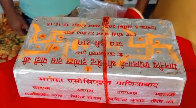 इस पुण्य अवसर पर ग़ाज़ियाबाद से सर्राफ शुद्ध चाँदी का अंशदान दिया गया है । इस ईंट का वजन कुल 22663 ग्राम जिसका मूल्य लगभग 14,68,562 रुपये है। इस ईंट को बनाने में हिन्दू व मुस्लिम दोनों वर्गों ने सहयोग किया है। उन्होंने यह भी बताया कि इस चांदी की ईंट का आज विधिवत गाजियाबाद में पूजन किया गया है। इस अवसर पर एसोसिएशन के सभी पदाधिकारी मौजूद रहे हैं और सभी भगवान श्रीराम से यह प्रार्थना करते हैं। कि सभी भारतवासी स्वस्थ रहें और देश में चिह्न मन बना रहे।