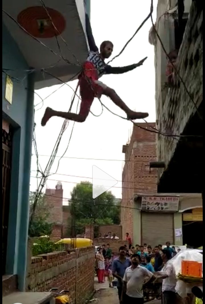 गाजियाबाद ( ghazibad news) यह घटना आपके रौंगटे खड़े कर देगी। विजयनगर इलाके की अकबरपुर बहरामपुर कॉलोनी में एक युवक ने पड़ोसी के तंज कसने पर छत से छलांग लगा दी। इस दौरान युवक घर के बाहर जा रहे बिजली के तारों में फंस गया और काफी देर बाद वह जमीन पर गिरा। गनीमत रही कि लाइन चालू रहते हुए भई इसे करंट नहीं लगा।