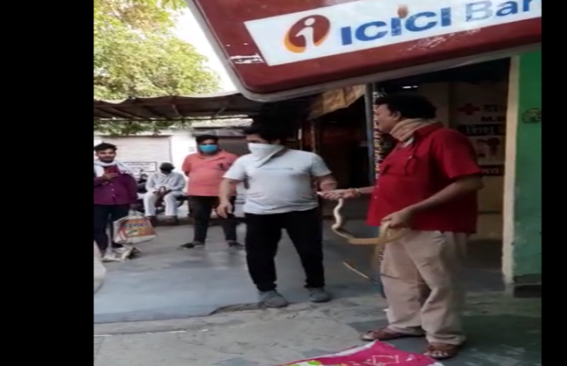 हालांकि, सांप को देखते हुए एटीएम के बाहर नोटिस चस्पा किया गया। जिसके बाद मौके पर भीड़ इक्टठा हो गई। वहीं, शख्स ने बहादुरी का परिचय देते हुए सांप को पकड़ा और उसे बोरे में बंद कर जंगल में छोड़ा। स्थानीय लोगों का कहना है कि अक्सर इस एटीएम पर बेतहाशा भीड़ रहती है। लेकिन लॉकडाउन के चलते भीड़ कम है और एटीएम का गेट बाहर से खुला था।