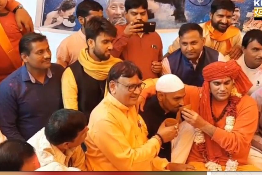 गाजियाबाद। Corona Virus ने चीन के बाद धीरे—धीरे विश्व के दूसरे देशों में भी पैर पसारने शुरू कर दिए हैं। अखिल भारत हिंदू महासभा भवन मंदिर में स्वामी चक्रपाणि महाराज के तत्वाधान में कोरोना वायरस को नष्ट कराने के लिए यज्ञ का आयोजन किया गया। इस दौरान कोरोना वायरस से निपटने के लिए तमाम बातों पर चर्चा की गई। कोरोना वायरस को खत्म करने के लिए गोमूत्र को सर्वोत्तम माना और इस दौरान सभी मौजूद लोगों को गोमूत्र का सेवन कराया गया।