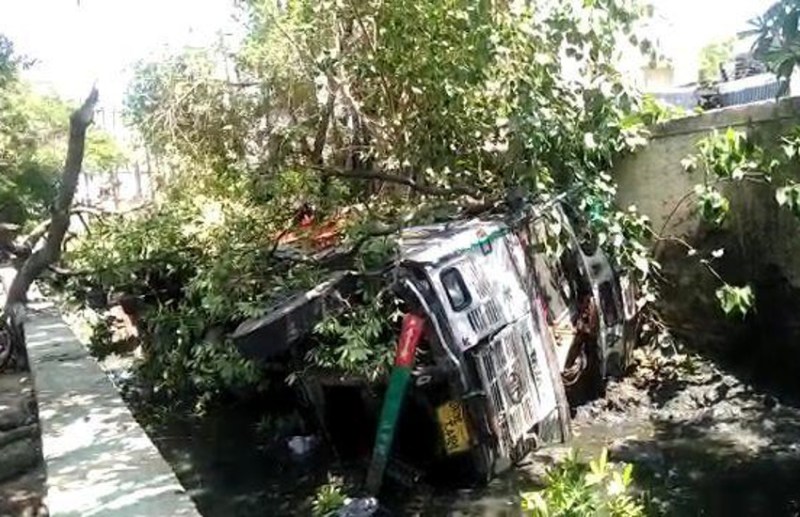 दरअसल, गाजियाबाद के नेहरू नगर इलाके में बने फ्लाई ओवर की तरफ से आने वाले रिहायशी इलाके में मंगलवार को अचानक एक तेज रफ्तार ट्रक आ गया। ट्रक के आगे तेज रफ्तार कार सवार ने ओवरटेक करते हुए अचानक ब्रेक लगा दिए, जिसकी वजह से ट्रक अनियंत्रित होकर एक खड़ी गाड़ी को रौंदता हुआ फ्लाई ओवर के नीचे नाले में जा गिरा। ये हादसा नेहरू नगर में स्थित बिजली घर के बिलकुल नजदीक हुआ। गनीमत ये रही कि बिजली घर और सड़क के बीच ये नाला आ गया और ट्रक सीधे नाले में जा गिरा। हालांकि जिस गाड़ी को ट्रक ने रौंदा उस गाड़ी में कोई नही था, जिसके कारण बड़ा हादसा टल गया। जैसे ही यह है हादसा हुआ तो आसपास के लोग मौके पर दौड़े और पुलिस को सूचित किया गया।