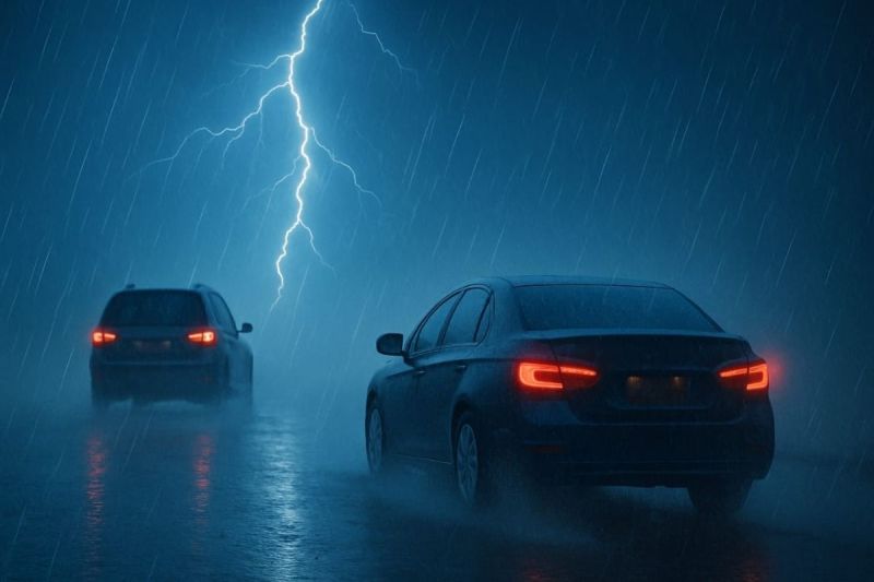 बारिश और बिजली गिरने की सांकेतिक फोटो जेनरेट AI