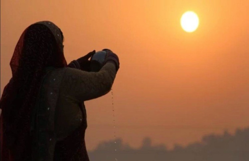 धुंध और ठंड के बीच भगवान भास्कर को अर्घ्य