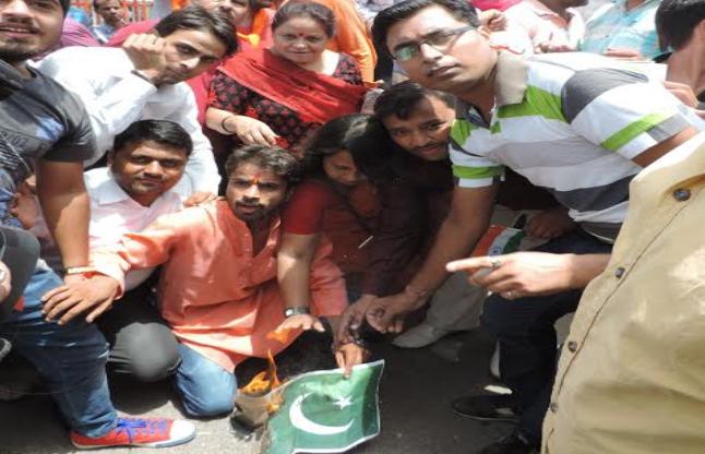 । अभिभावक समाजिक कल्याण संस्था ने आज काला दिवस के विरोध में पाकिस्तान के झंडे को आग के हवाले करके विरोध व्यक्त किया। समिति के पदाधिकारियों ने आंतकी बुरहान का समर्थन किए जाने पर जमकर पड़ोसी मुल्क के खिलाफ कलेक्ट्रेट परिसर में प्रदर्शन करते हुए नारेबाजी की। इसके बाद पाकिस्तानी झंडे को आग के हवाले कर दिया गया। इसके बाद इन लोगों ने डीएम को राष्टपति और पीएम के नाम एक ज्ञापन भी सौंपा। उधर इस मामले के बारे में एलआईयू को भनक लगने से पहले ही प्रर्दशनकारी वहां से चले गए।