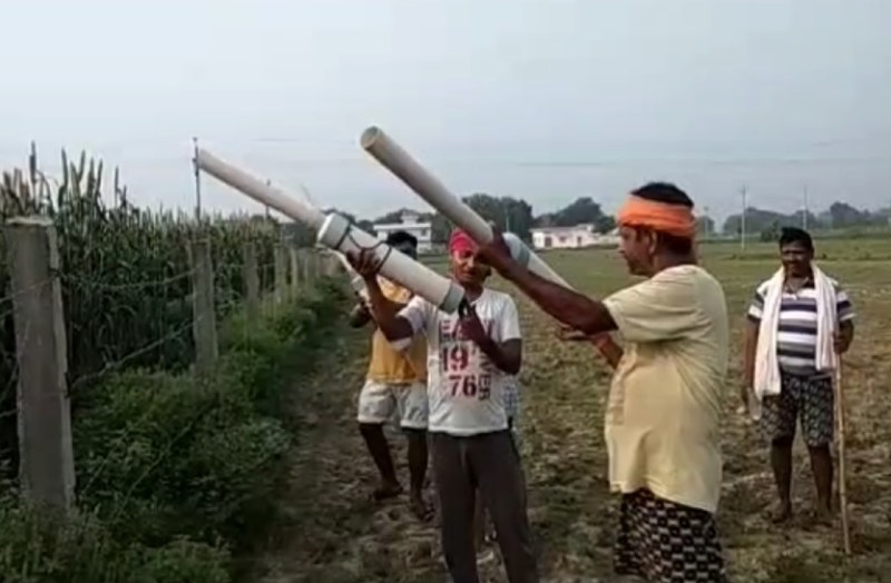 गाजीपुर. कहते हैं की आवश्यकता ही आविष्कार की जननी है। इसका जीता जागता उदाहरण गाजीपुर जिले में देखने को मिल रहा है। आवारा पशुओं और नीलगाय के आतंक से परेशान परेशान किसानों ने एक ऐसी तोप जैसी बंदूक बनायी है, जिसे रखने और फायर करने के लिये किसी लाइसेंस की जरूरत नहीं और इससे किसी की जान भी नहीं जाती। पर इसकी आवाज इतनी जबरदस्त हे कि आवारा पशु इससे कोसों दूर भागते हैं। किसान नौजवानों ने महज 300 रुपये की चौंकाने वाली कीमत में इस देसी तोप को बना डाला है। यही नहीं इसमें एक फायरिंग का खचर् महज दो रुपये आता है। खेतों की रखवाली से परेशान किसानों का कहना है कि उन्हें यह तोप नहीं मिली बल्कि चैन सुकून की नींद लेने की आजादी मिल गई है।
