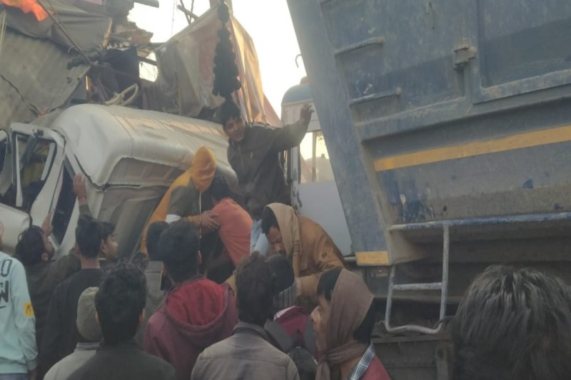 दुर्घटना के के बाद मौके पर जुटी भीड़