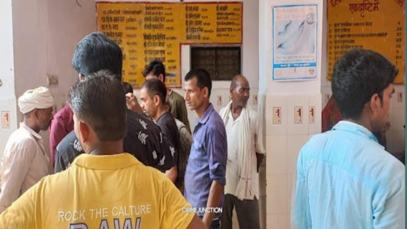 प्राथमिक स्वास्थ्य केंद्र पर करंट से युवक की मौत के बाद जुटे लोग